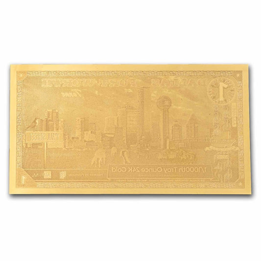 1 billet d'or Goldback 24 carats de Dallas Fort Worth, Texas (paquet de 100)