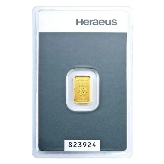 1 gramme Lingotin d'Or - Heraeus - Kinebar series