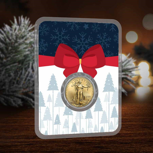 Pièce d'or américaine American Gold Eagle 2025 de 1/10 oz - avec emballage cadeau et carte Pine Woods