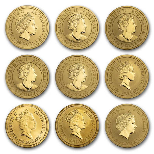 Pièce d'or australienne de 1 oz Kangourou/Pépite BU (Année aléatoire)