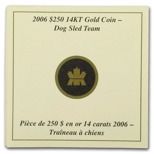 Pièce de 250 $ en or (preuve) du Canada 2006 pour une équipe de chiens de traîneau