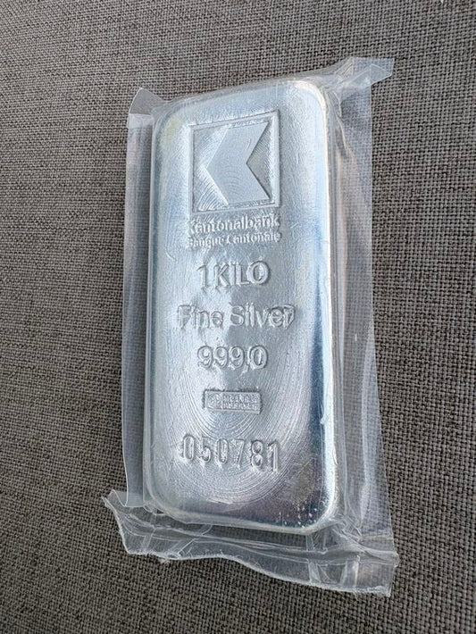 Lingot d'argent de 1 kg de la Banque Cantonale, argent fin 999/1000