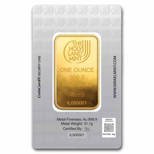 Lingot d'or de 1 oz - Colombe de la Paix de la Monnaie de Terre Sainte (Analysé)