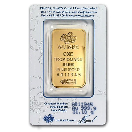 Lingot d'or de 50 grammes - PAMP Suisse (coulé, avec certificat d'analyse)