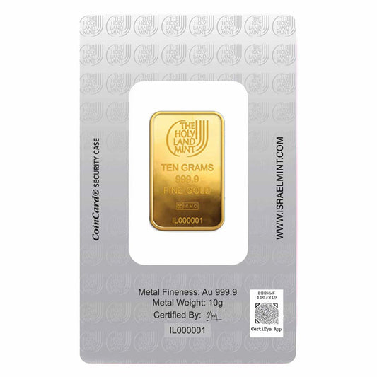 Lingot d'or de 10 grammes - Colombe de la Paix de la Monnaie de Terre Sainte (Analysé)