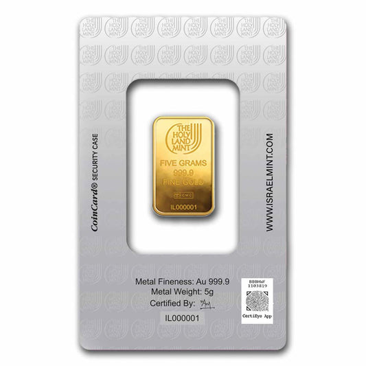 Lingot d'or de 5 grammes - Colombe de la Paix de la Monnaie de Terre Sainte (Analysé)
